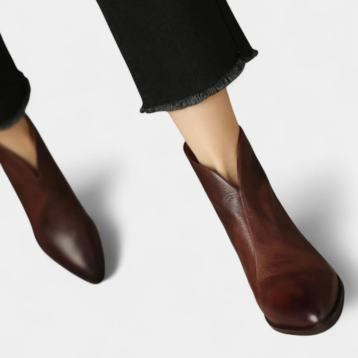 Nuestros adorados botines Camille están entre los favoritos porque combinan lujo y elegancia con una comodidad pensada para el día a día. El diseño refinado los hace perfectos para acompañar cualquier outfit, mientras que el tacón bajo aporta estabilidad y feminidad sin cansar. Un calzado ideal para quienes desean sentirse cuidadas y seguras de sí mismas en cada ocasión.