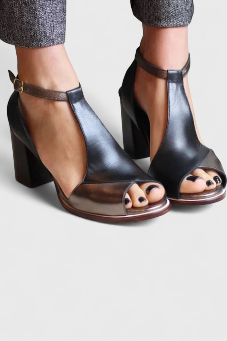 Elegancia audaz con soporte y estilo. Los tacones Vasilica destacan con su diseño de patchwork moderno, punta abierta y cinturilla al tobillo, ofreciendo un look sofisticado sin sacrificar la estabilidad. El tacón grueso eleva con firmeza, ideal para destacar con confianza en cada paso.