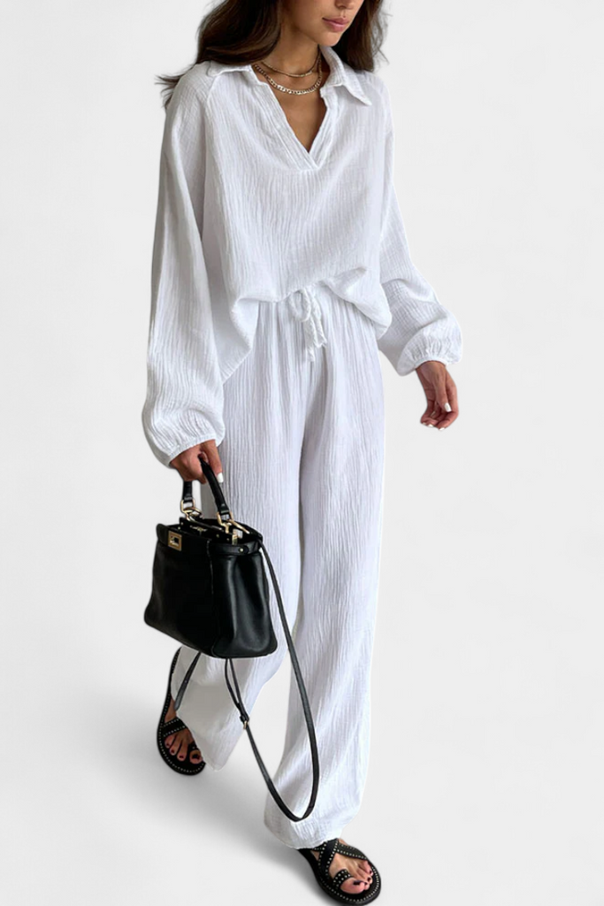 - Estilo: Conjunto de dos piezas (blusa + pantalón)