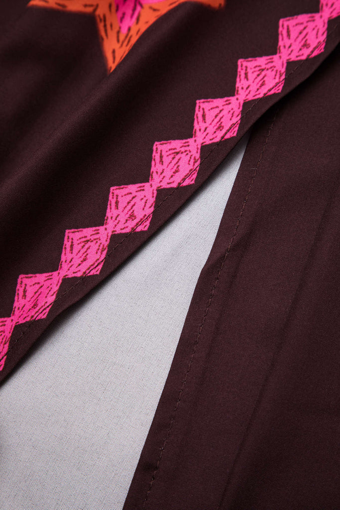 - Bordados en tonos vivos con palmeras, estrellas y aves tropicales