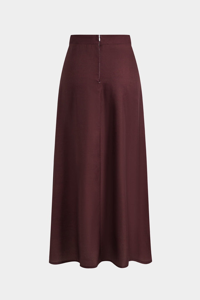 - Falda midi de cintura alta con abertura lateral que alarga y estiliza la figura