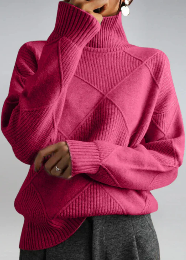Este suéter de cuello alto lujoso está confeccionado en una mezcla de cachemira suave que es tan agradable de llevar como de ver. La tela es cálida, transpirable y diseñada para ser delicada con la piel: no pica ni irrita. Su corte fluido y silueta favorecedora lo convierten en una elección imprescindible para un look cuidado mientras te mantienes perfectamente cómoda. Perfecto para usar en capas o solo, es una pieza atemporal para añadir a cualquier guardarropa de invierno.