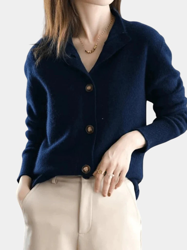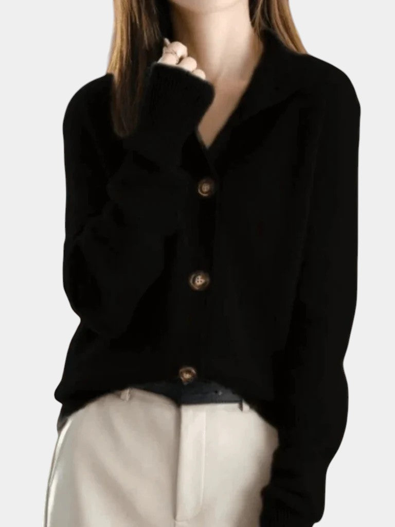 El Cardigan Sofia con Botones combina la comodidad acogedora con la elegancia de una prenda atemporal. Tejido en una tela suave y cálida, cae bellamente con un ajuste relajado que facilita el uso en capas. El clásico cierre frontal con botones y el sutil cuello agregan un toque refinado, convirtiendo esta pieza en algo más que un simple cardigan: es un complemento versátil para cada estación.