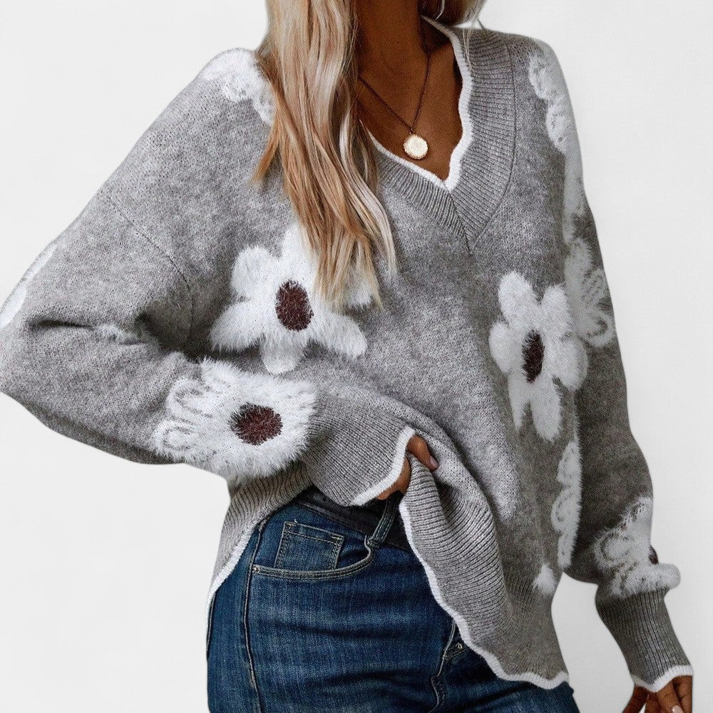 Thea Suéter Floral Elegante Con Cuello En V