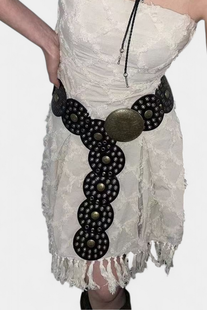 Alicia Cinturón Cowboy Vintage con Hebilla Circular Decorativa