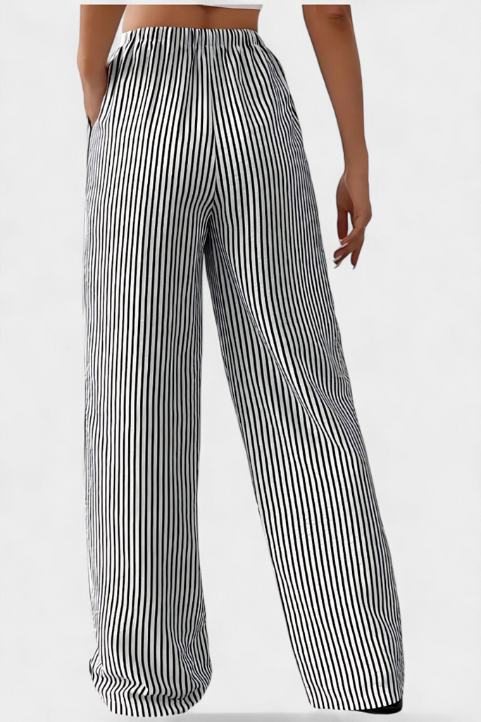 Sabrina Pantalones Rectos Ligeros con Cintura Ajustable a Rayas
