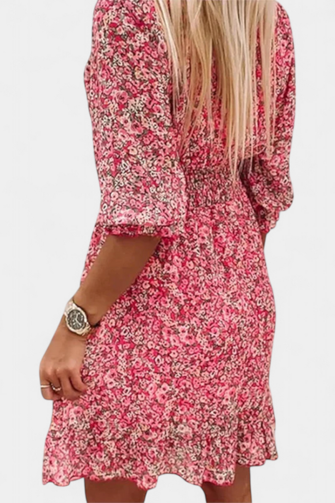 Benicia Vestido Floral de Manga Abullonada con Dobladillo Juguetón