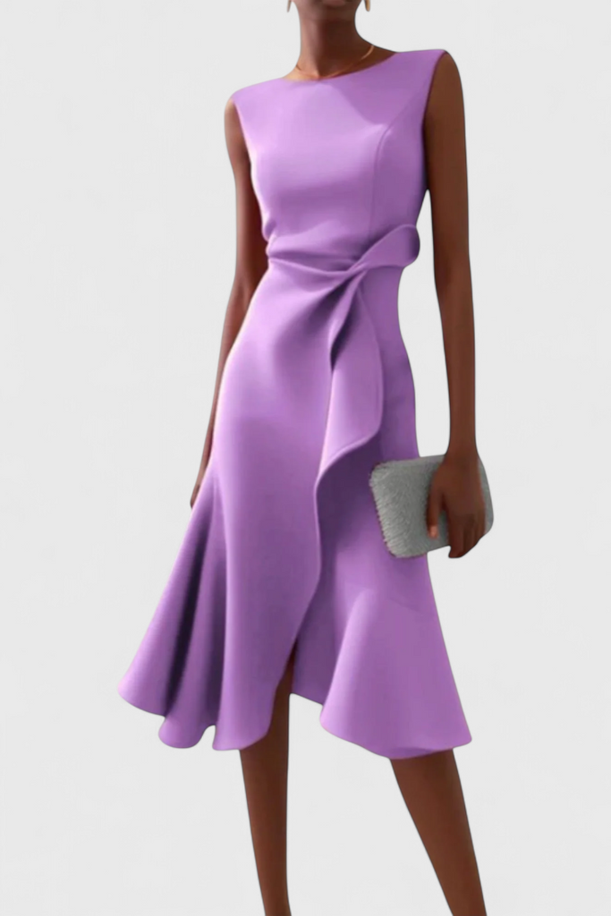 Claudia Vestido Midi Asimétrico con Drapeado Elegante