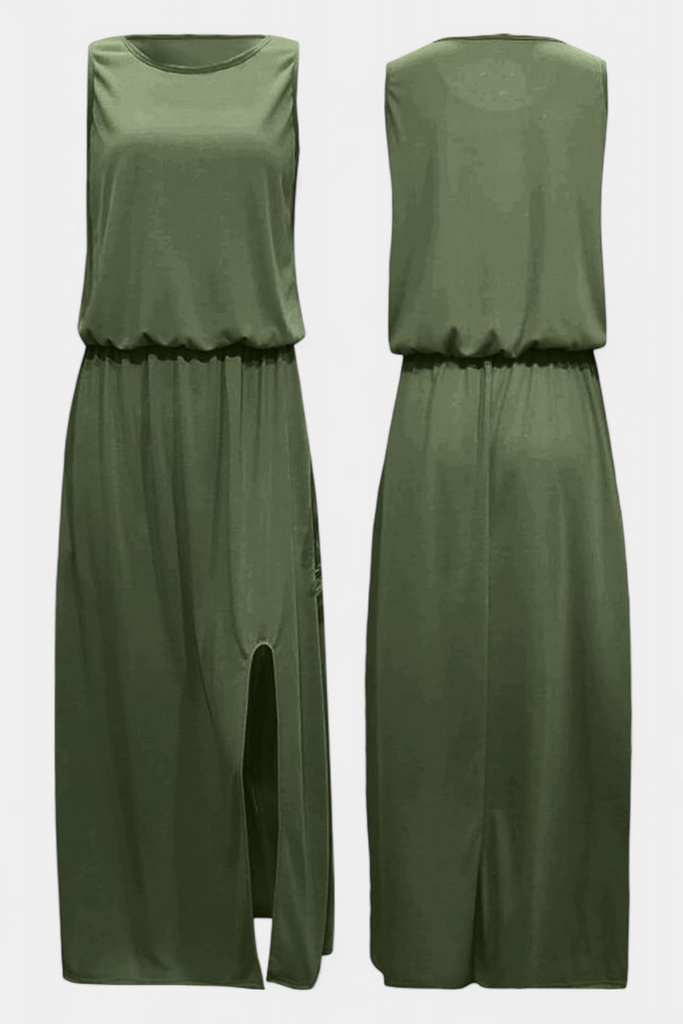 Dianne Vestido Sin Mangas con Abertura Lateral y Silueta Holgada