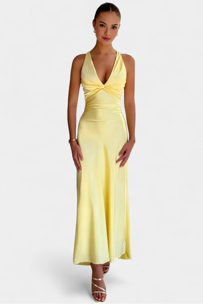 Dolores Vestido Elegante con Cintura Torcida y Escote en V