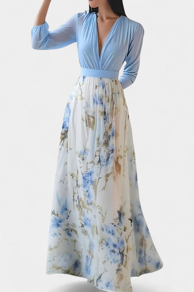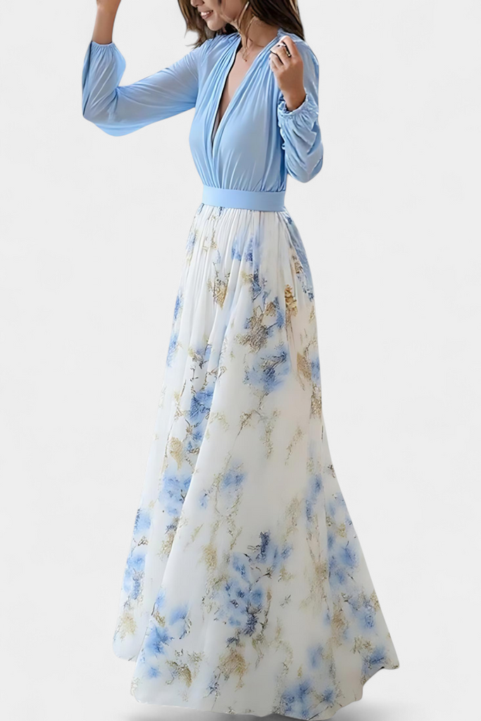 Eliane Vestido Largo con Estampado Floral y Escote Profundo