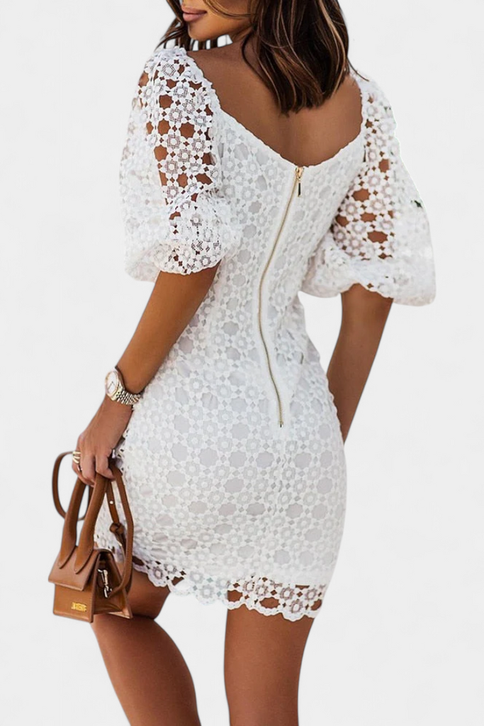 Engracia Vestido Corto de Encaje con Mangas Abullonadas