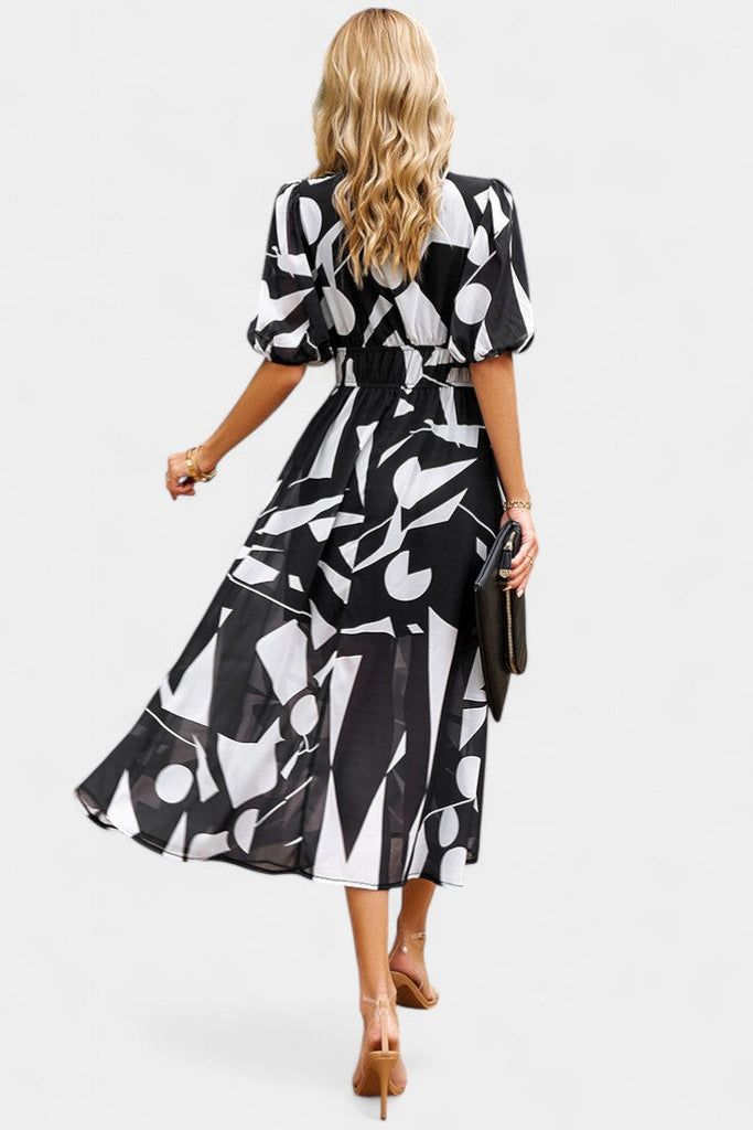 Aéreo, femenino y diseñado para moverse con gracia, el Vestido Georgina combina la comodidad diaria con un encanto romántico. Con sus mangas abullonadas, cintura fruncida que favorece y un dobladillo asimétrico fluido, este vestido midi floral está hecho para iluminar tus días—elegante sin esfuerzo desde el brunch hasta paseos por el jardín.