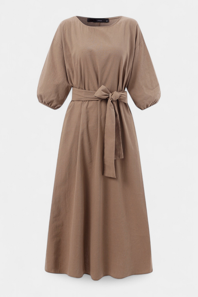 Krisbel Vestido de Lino Algodón con Cintura Anudada