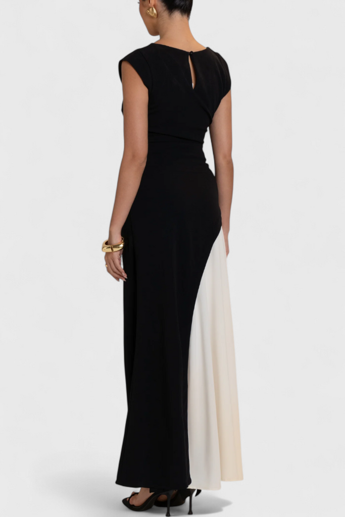 Mallory Vestido Midi Bicolor de Corte Recto y Silueta Definida