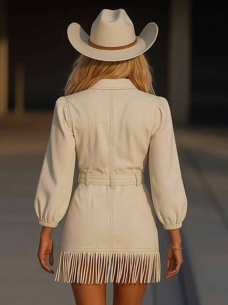 Raya Vestido Mini de Denim con Borlas