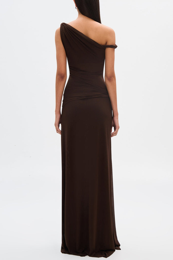 Eranda Vestido Maxi de Malla Drapada Off-Shoulder
