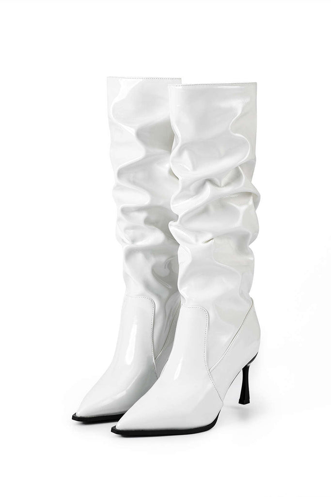 Botas de Cuero Sintético con Pliegues y Punta Afila