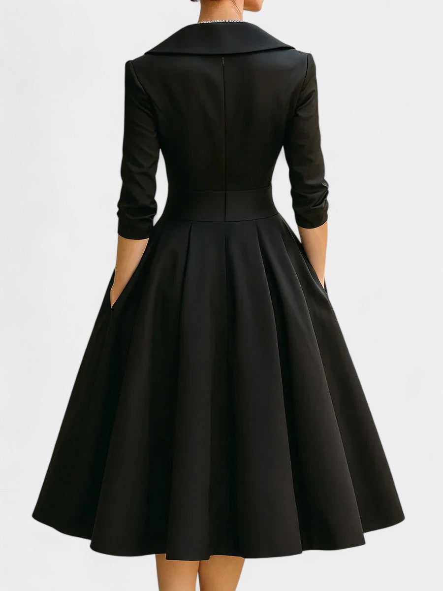 El Clara | Vestido Midi de Satén combina diseño refinado con lujo práctico. Confeccionado en satén lustroso, presenta un cuerpo cruzado drapeado, cuello estructurado y bolsillos laterales ocultos: perfecto para bodas, veladas y salidas nocturnas elegantes.