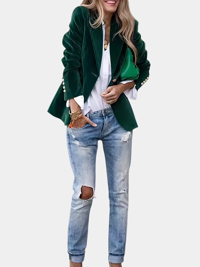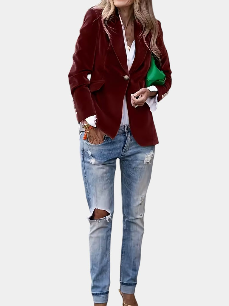 ✨ Acabado Elegante – Con cuello de solapa clásico y cierre de un botón.