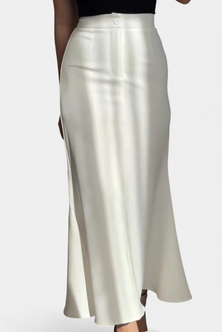 Diseñada para esculpir con elegancia. La falda Milagros abraza la figura con su corte entallado y se abre sutilmente en un bajo tipo sirena que aporta movimiento y sofisticación. Ideal para un look pulido y femenino en temporadas de entretiempo.